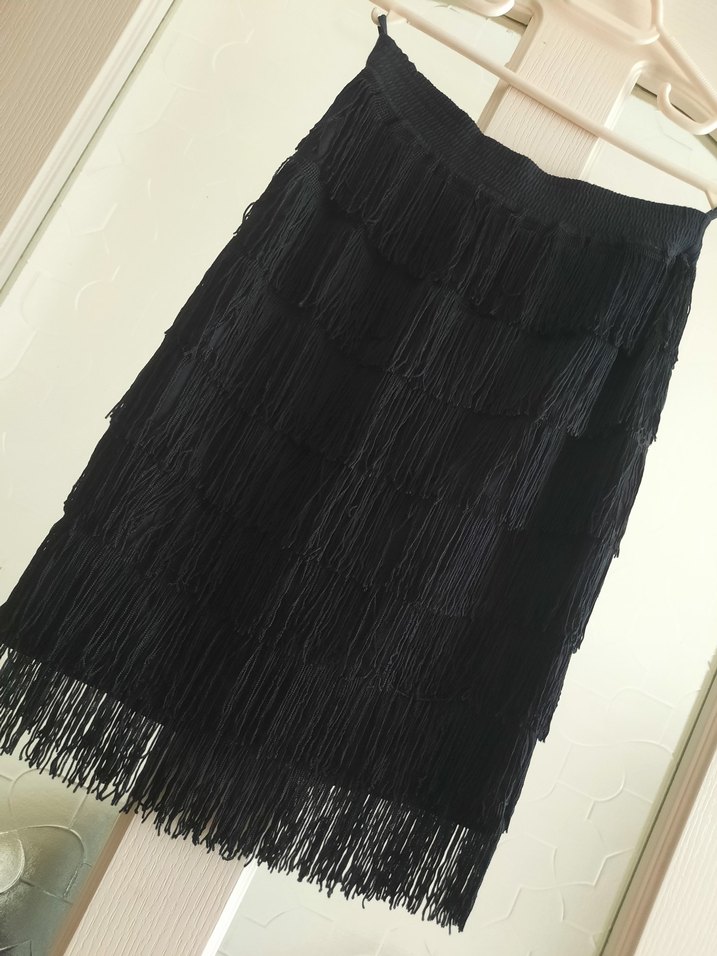 Siyah,cıvıl cıvıl ,püskül detaylarıyla oldukça değişik,kaliteli ve tarz bir etek.özel günler için harika bir seçenek.boy 50cm.bel tekyön 32cm.lastikli olduğu için 40cm'e kadar açılır.