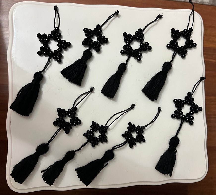 Yıldız şeklinde boncuk ve püsküllü siyah örgü saç aksesuarları. Gotik, bohem, retro ve hippie tarzlar için uygundur. Toplu fiyattır.