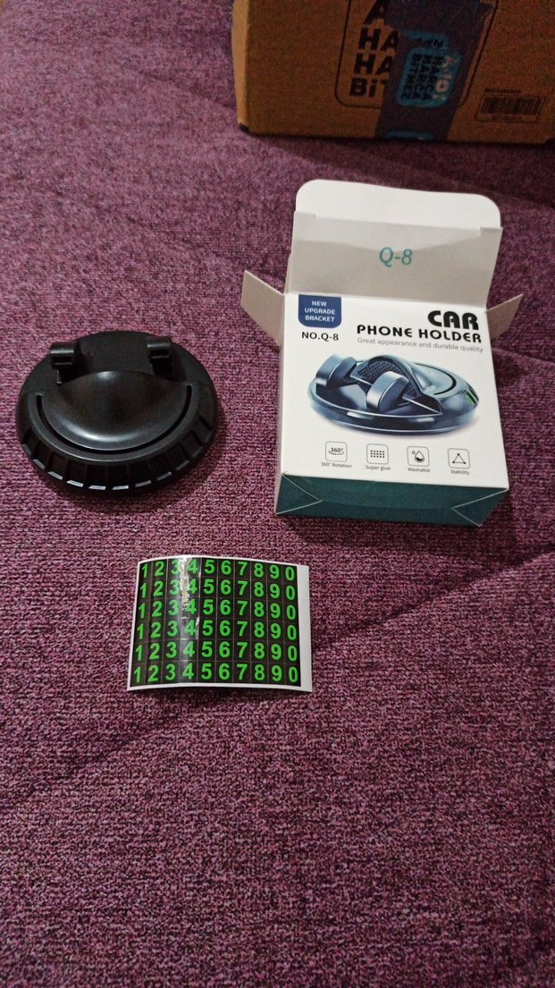 Siyah Q-8 araç numaratorlu telefon tutucu, sağlam taban ve kaymaz tasarıma sahiptir. Telefonunuzu güvenle tutar ve sayı sticker seti ile özelleştirilebilir.