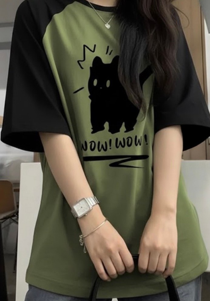 Siyah Raglan Yeşil Wow! Wow! Cat