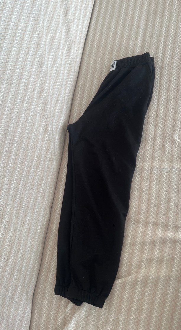 Yumuşak sentetik kumaştan, rahat kesimli siyah kadın eşofman altı, drapeli tasarıma sahip, günlük kullanım için uygundur.