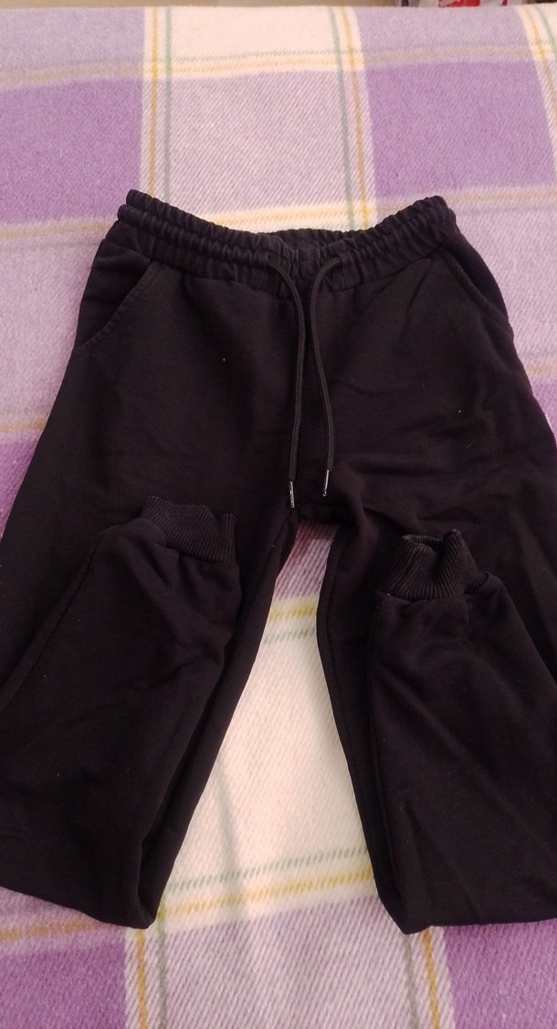 Yumuşak ve sıcak kumaştan, midi boy, rahat kesim siyah eşofman altı. Günlük kullanım için şık ve rahat sokak stili.