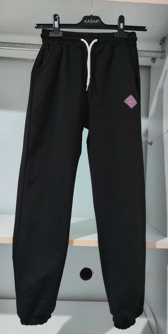 Siyah, rahat kesim kadın eşofman altı, yumuşak ve sıcak kumaştan, sade tasarımlı ve küçük logo detaylı. Günlük kullanım için uygundur. 12-13 yaş