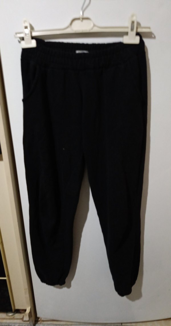 Siyah, rahat kesim midi uzunlukta erkek eşofman Yumuşak sentetik kumaştan, günlük sokak stili için uygun. 12,13 yaş