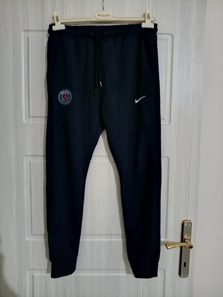 Siyah, kemerli ve rahat kesim erkek eşofman altı. Yumuşak kumaştan, spor ve günlük kullanıma uygun.