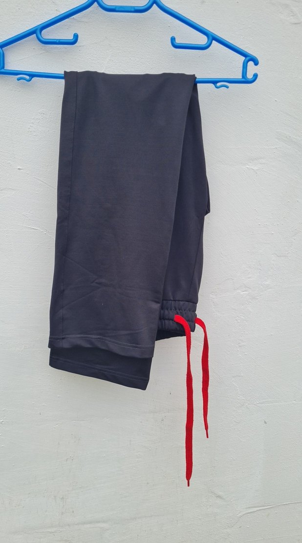 Siyah renkte, rahat kesim ve elastik bel bantlı, kırmızı bağcık detaylı erkek eşofman altı. Spor ve sokak stili için uygundur.