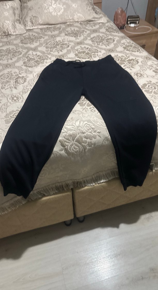 Siyah, rahat kesim, yumuşak ve sıcak kumaştan midi boy erkek eşofman altı, günlük kullanım için uygundur. İçamaşır suyu lekesi gibi hafif renk açılması var