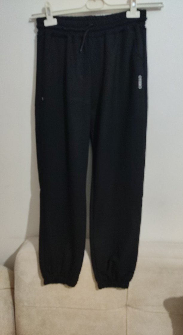 Yumuşak ve sıcak kumaştan yapılmış, normal boyda, rahat kesim siyah erkek eşofman altı, günlük rahat kullanım için uygundur.