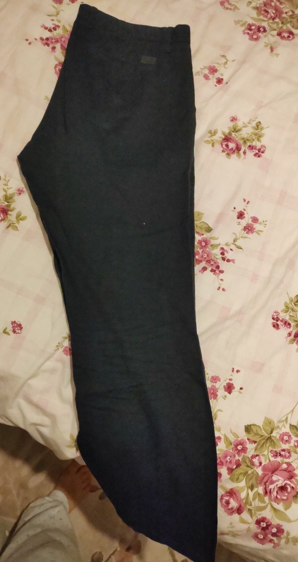 Yumuşak sentetik kumaştan, drapeli tasarıma sahip siyah, normal boy, rahat kesim pantolonu.