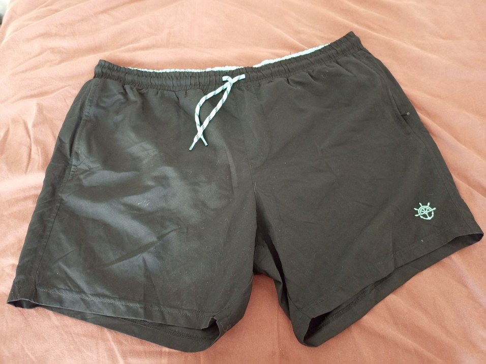 Siyah, elastik bel ve bağcık detaylı, rahat kesim erkek mayo. Düz ve sokak tarzı, plaj için uygun.