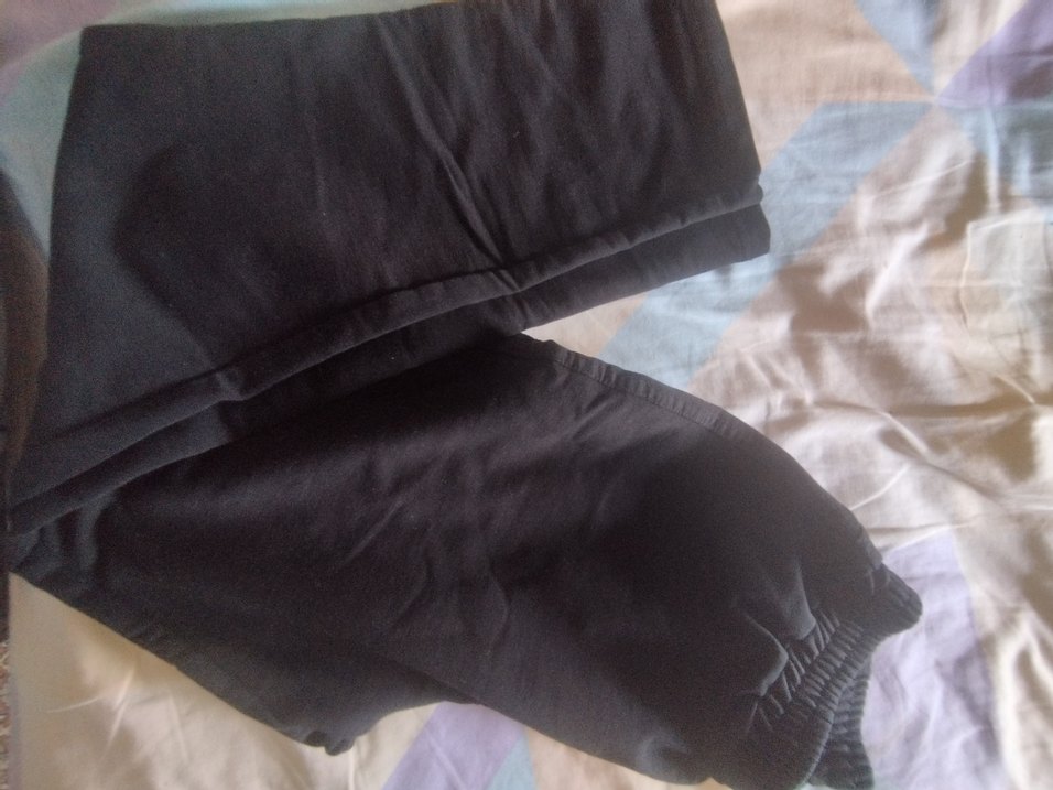 Yumuşak sentetik kumaştan, bol kesim siyah eşofmanı, drapeli tasarımıyla günlük rahatlık sağlar.