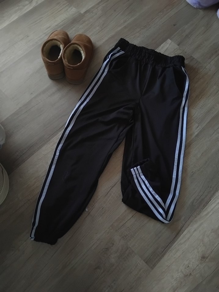 Elastik bel bantlı, beyaz yan çizgili siyah eşofman altı. Rahat kesimi ve sentetik kumaşıyla günlük kullanıma uygundur. Marka temsilidir