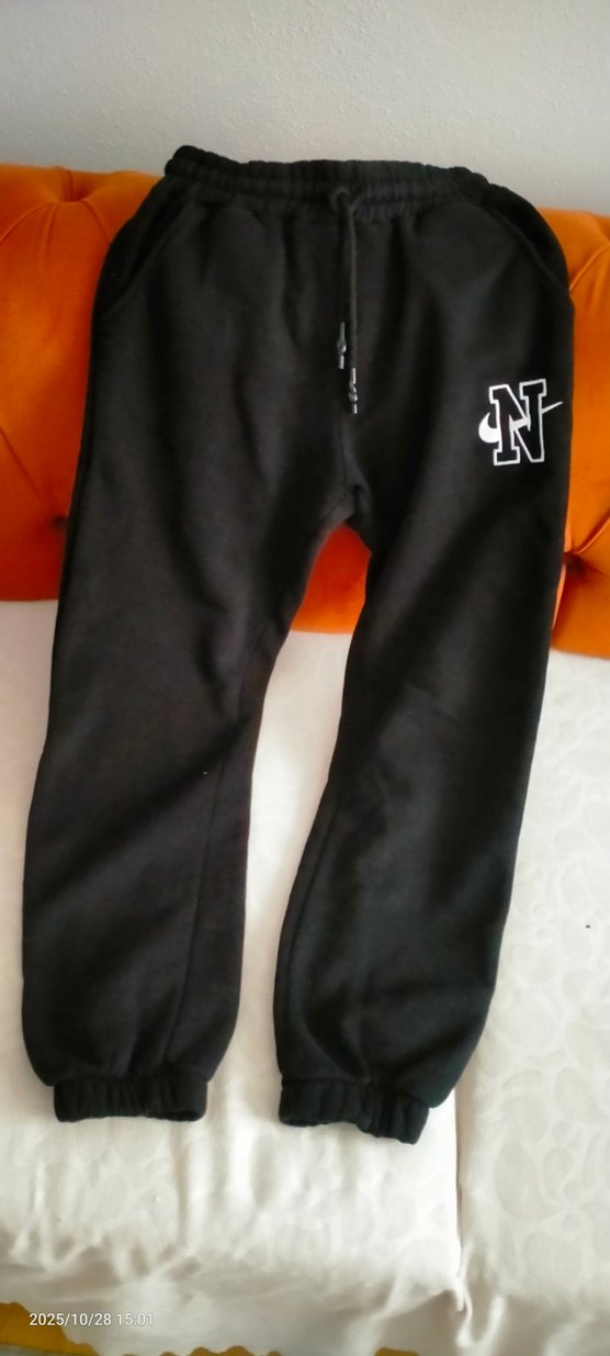 Yumuşak ve sıcak kumaştan, elastik bel ve paçalarla rahat kesim siyah eşofman altı, minimal desenli küçük logo ile.