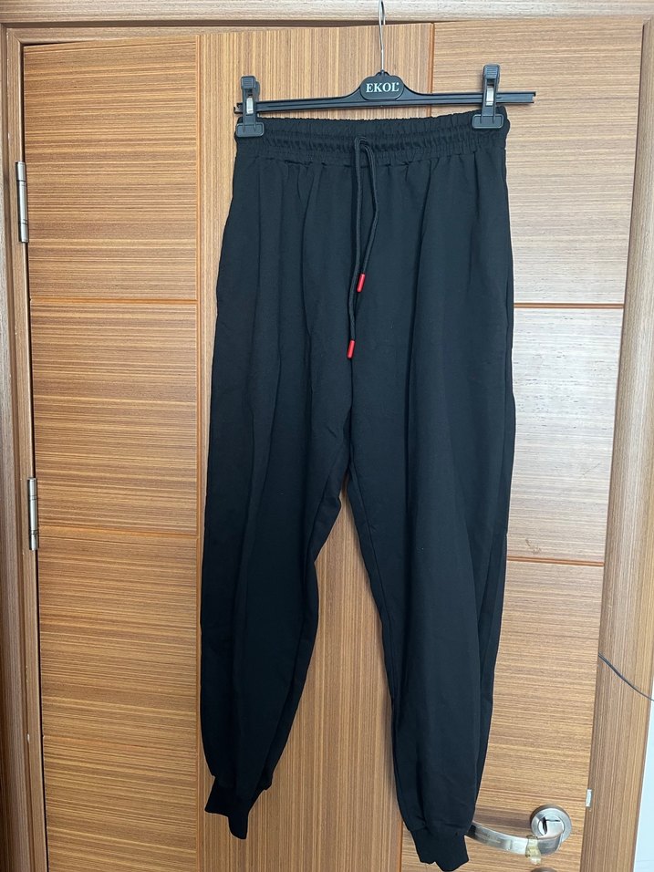 Siyah, sentetik kumaştan yapılmış rahat kesim unisex eşofman altı. Normal boyda, günlük kullanım ve trend bir rahatlık sunar.