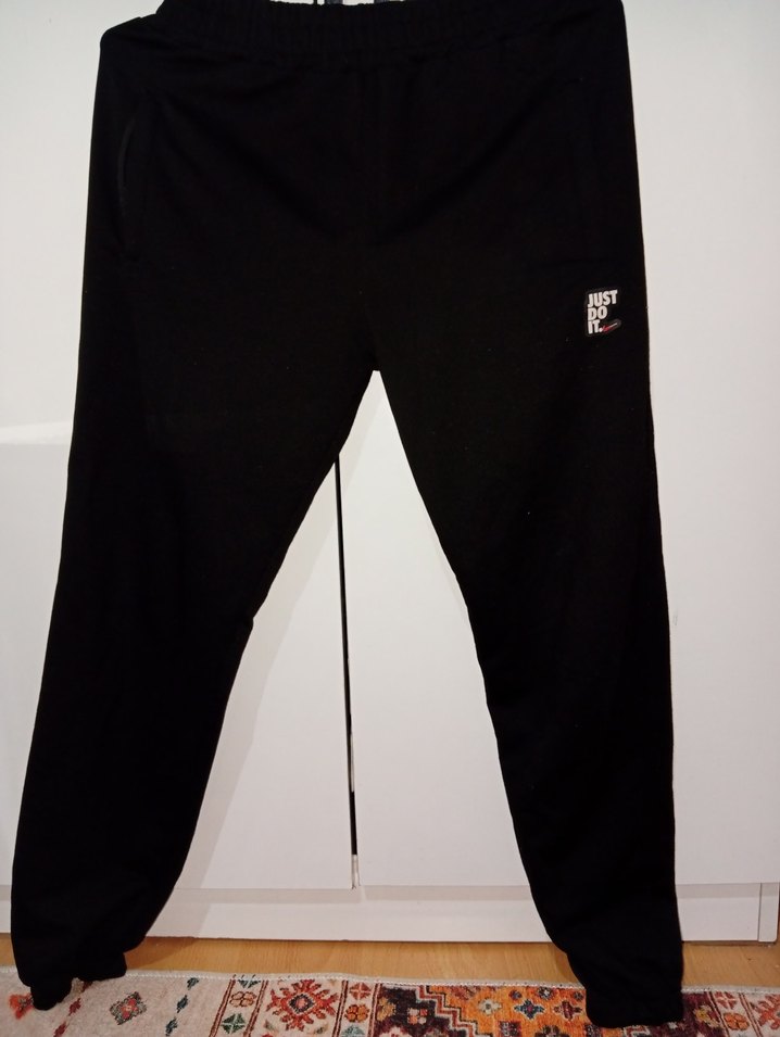 Siyah, rahat kesim, yumuşak ve sıcak kumaştan erkek eşofman altı. Velcro detaylı, spor ve günlük kullanıma uygun. ♂️