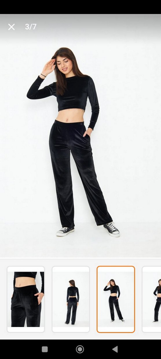 Siyah, rahat kesimdir.Yumuşak kadife kumaştan üretilmiş, spor ve günlük sokak stili için uygun.Bir kez kullanıldı.Sorunsuz.