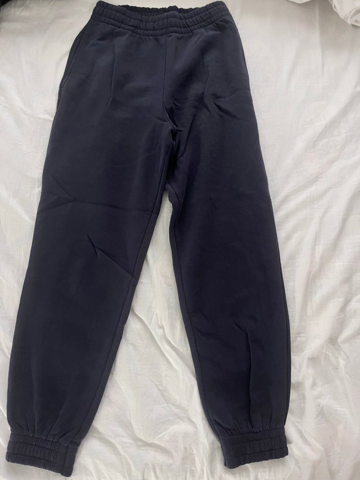 Siyah, rahat kesim ve yumuşak dokulu kadın eşofman altı, lastikli bilek ve bel kısmıyla dış mekan kullanımı için uygundur. Çok az kullanıldı kalındır kışlık