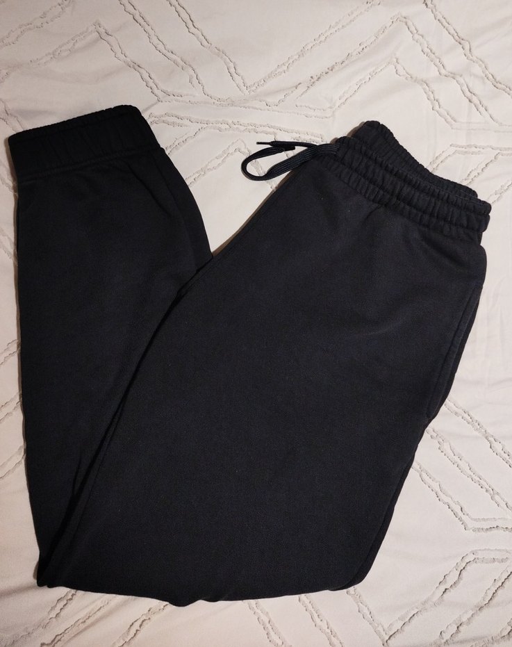 Siyah renkte, rahat kesim ve normal boyda, yumuşak ve sıcak bileği lastikli kadın eşofman altı. Günlük sokak stili için uygun.