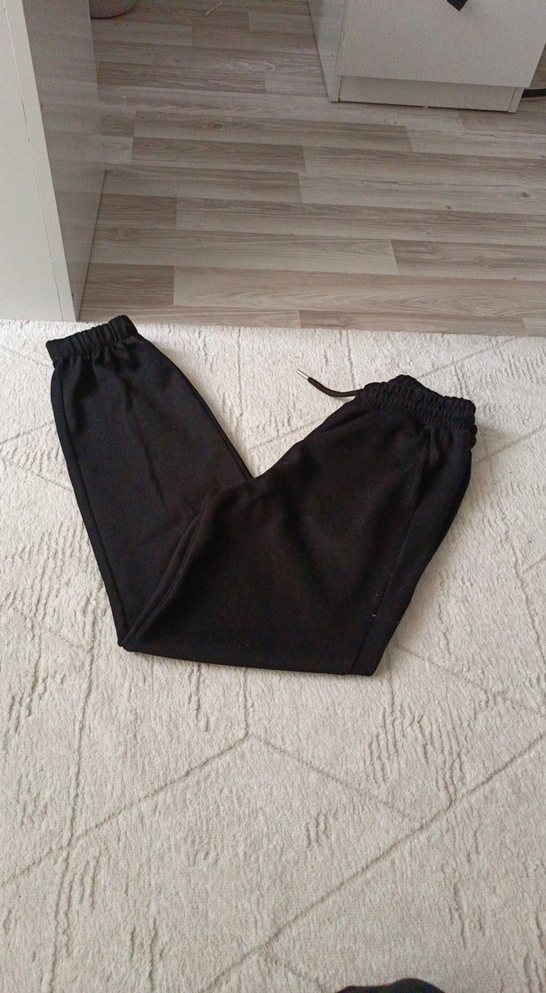 Yumuşak ve sıcak kumaş, midi boy ve elastik bel bantlı siyah rahat kesim kadın eşofman altı. Günlük kullanım için uygundur. cok rahat 1defa giyildi