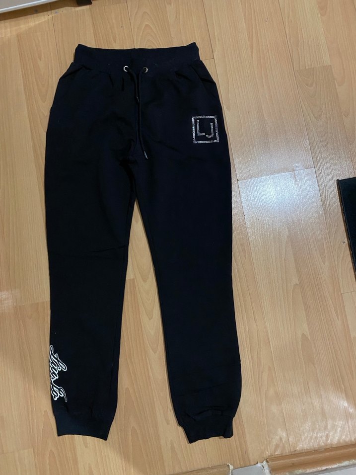 Siyah, rahat kesim kadın eşofman altı, yumuşak ve sıcak kumaştan üretilmiştir. Belinde bağcıklı ve küçük logolu detaylara sahiptir, gündelik sokak stiline uygundur.