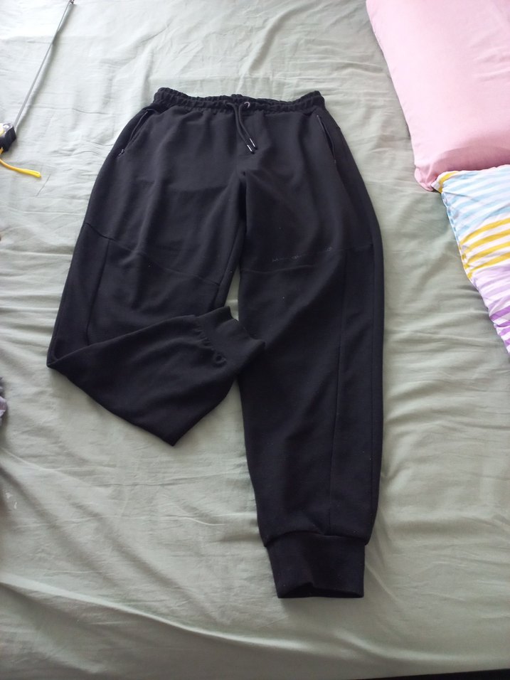 Yumuşak ve sıcak kumaştan siyah, rahat kesim kadın eşofman altı. Elastik bel ve manşetlerle günlük kullanıma uygun.