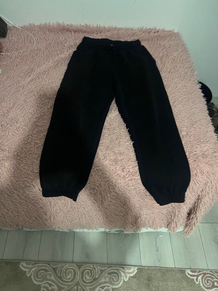 Siyah, rahat kesim ve normal boyda, yumuşak kumaştan üretilmiş kadın eşofman altı. Günlük sokak stiline uygun, zahmetsiz şıklık sunar.
