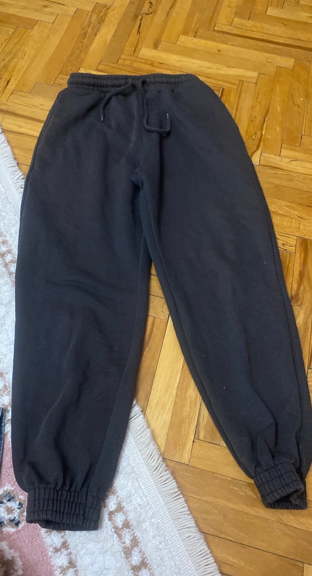 Siyah, rahat kesim ve yumuşak kumaştan yapılmış, normal boy ve lastikli paçalı kadın eşofman altı. Günlük kullanım için uygun ve şık.