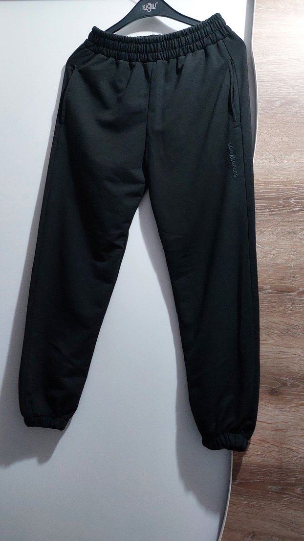 Siyah, rahat kesim kadın eşofman altı. Yan cepler ve lastikli paçalar içerir. Günlük kullanım için yumuşak ve sıcak kumaştan üretilmiştir.