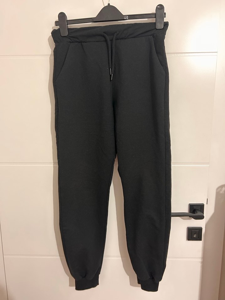 Siyah, rahat kesim kadın eşofman altı, yumuşak ve sıcak kumaştan. Midi boyda, sokak stili ve sportif şıklık sunar.