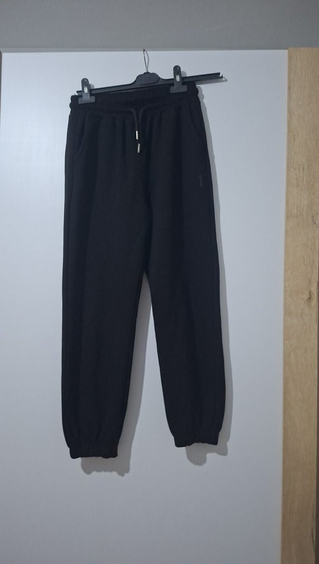 Siyah, rahat kesim, midi boy, yumuşak ve sıcak kumaştan kadın eşofman altı. Günlük kullanım için uygundur.