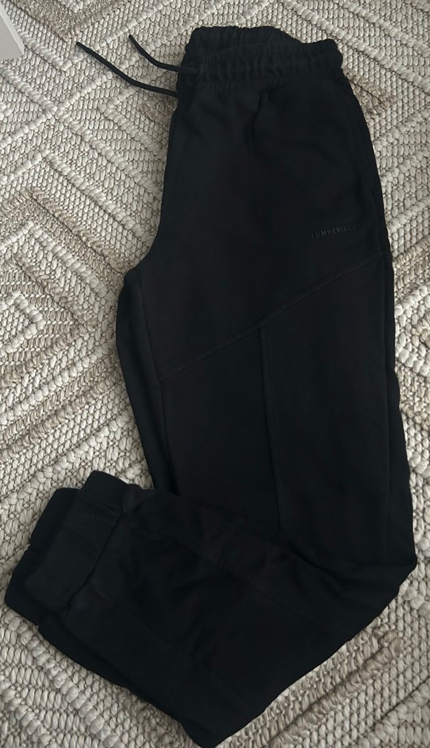 Yumuşak sentetik kumaştan, rahat kesim siyah eşofman altı. Günlük kullanım için konforlu ve şık, midi boyda.