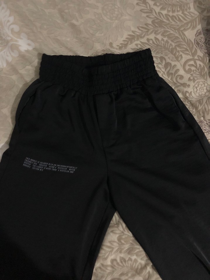 Siyah, rahat kesim, midi boy kadın kumaş pantolon, elastik bel bandıyla günlük sokak modasına uygun, zahmetsiz şıklık sunar. Saten kumaş