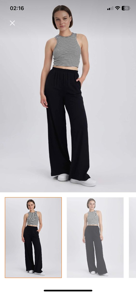 Siyah, bol kesim, midi uzunlukta kumaş pantolon. Yumuşak sentetik kumaştan üretilmiş, günlük kullanıma uygun, rahat ve şık bir tasarım. Hiç kullanılmadı