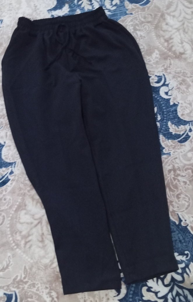 Siyah , bol kesim kumaş pantolon midi boyda, rahat ve şık bir görünüm sunar. Günlük kullanıma uygun, yumuşak sentetik kumaştan üretilmiştir.