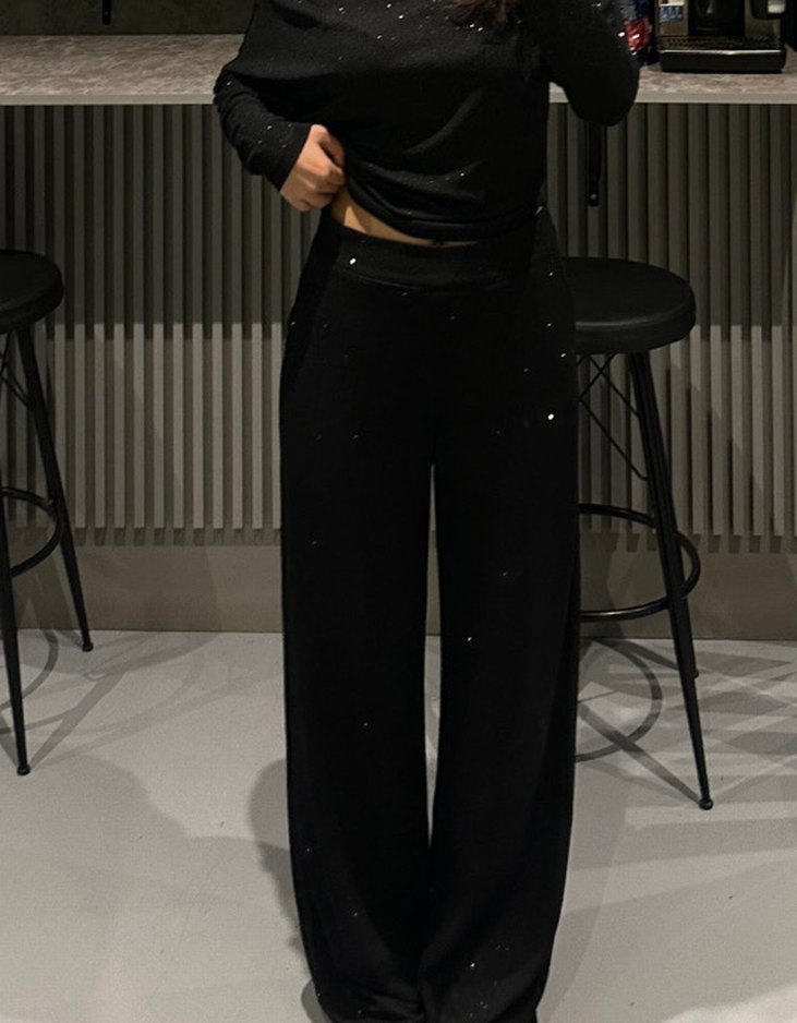 Siyah Rahat Kesim Kadın Simli Pantolon