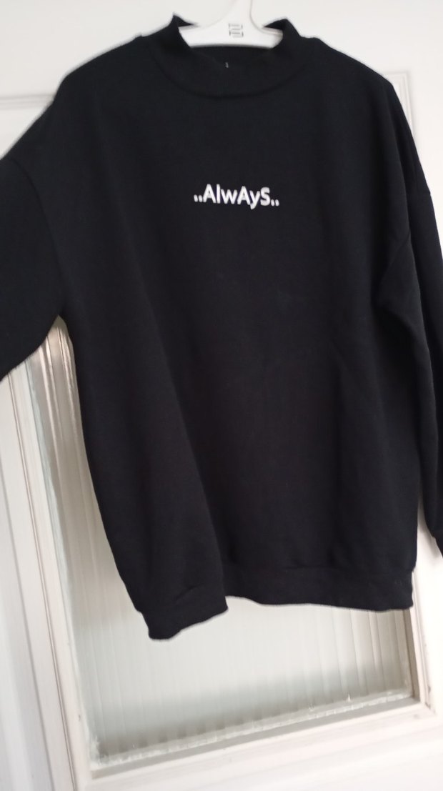 Siyah, uzun kollu rengınde solma vs yoktur sıyah olduğu ıcın öyle çıkmıştır, yuvarlak yakalı, rahat kesim sweatshirt. Önünde "Always" baskısı bulunur, yumuşak ve sıcak kumaştan üretilmiştir.