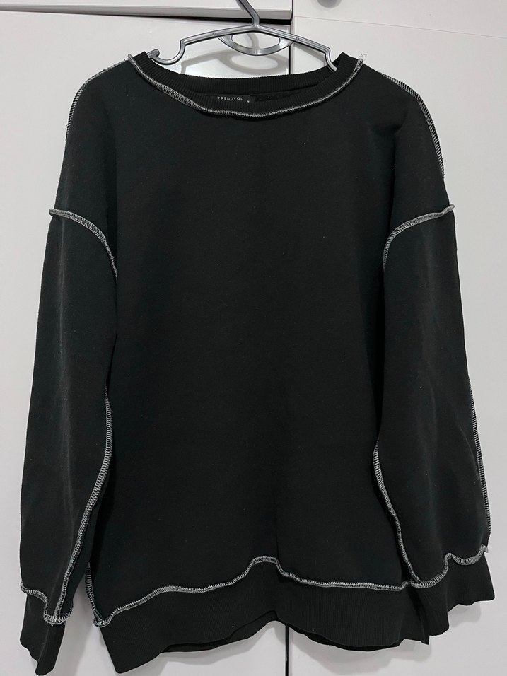 Siyah renkli, yuvarlak yakalı ve uzun kollu kadın sweatshirtü, rahat kesimi ve yumuşak dokusuyla günlük kullanıma uygundur. Dikiş detaylarıyla sokak stiline uygun bir görünüm sunar.
