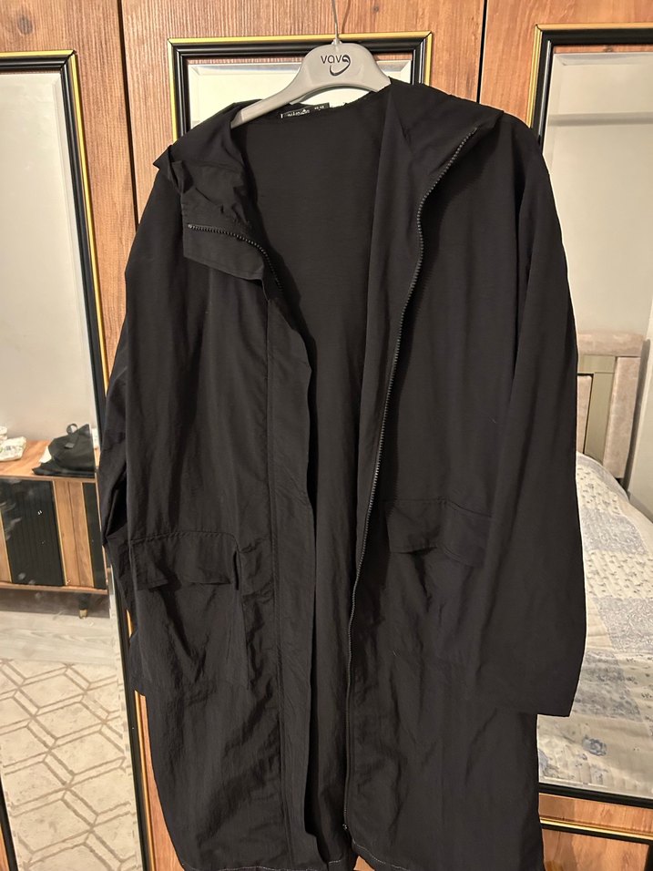 Siyah Rahat Kesim Kadın yağmurluk