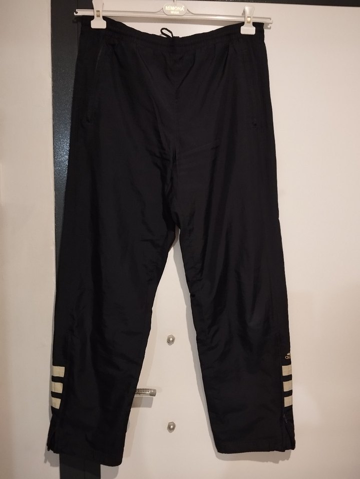 Siyah, sentetik kumaştan, bol kesim ve fermuarlı ceplere sahip kayak pantolonu. Spor ve günlük stil için uygundur.