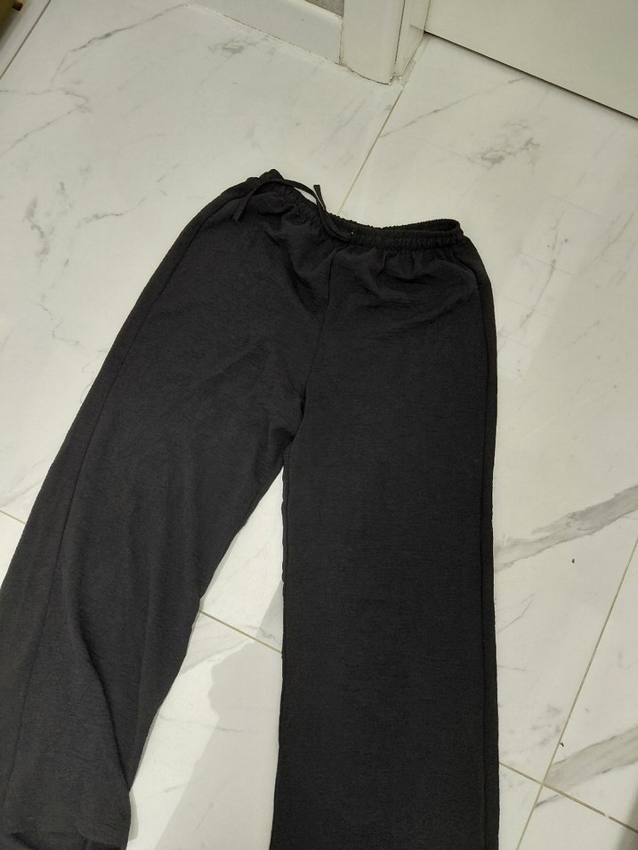 Siyah keten kumaştan, rahat kesim midi boy pantolon, normcore tarzıyla günlük kullanım için uygun, zahmetsiz şıklık sağlar.