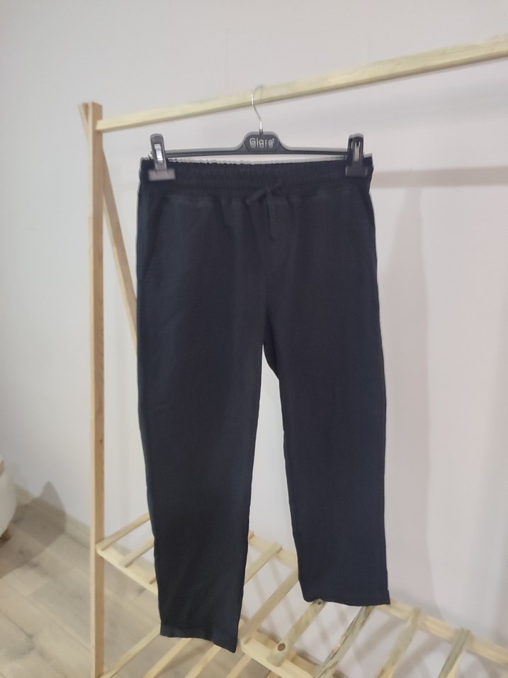 Siyah, rahat kesim erkek kumaş pantolon, yumuşak ve konforlu dokusuyla spor ve günlük sokak stiline uygundur.