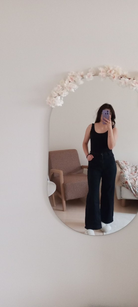 Siyah, desen içermeyen, rahat kesim midi uzunlukta kot pantolon. Günlük kullanıma uygun, zahmetsiz şıklık sunar. bu çok güzel bunun aynısı olan tek farkı gri düğmeli bir ürün daha var ona da bakabilirsiniz riklalı 36 38 için ideal