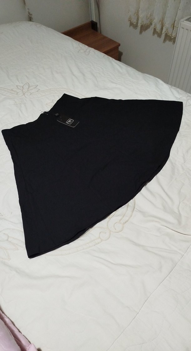 Siyah midi etek, rahat kesimi ve yumuşak, dikkat çeker. Minimalist tarzıyla günlük kullanıma uygundur.Etiketi üstünde hiç kullanılmadı.