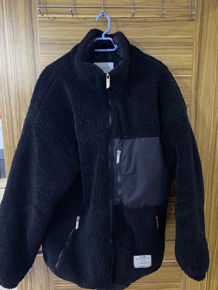 Siyah, rahat kesim, uzun kollu ceket. Yumuşak ve sıcak kumaştan, kürk detaylı, midi boy ve normal uzunlukta. Fermuarlı cepler bulunur.