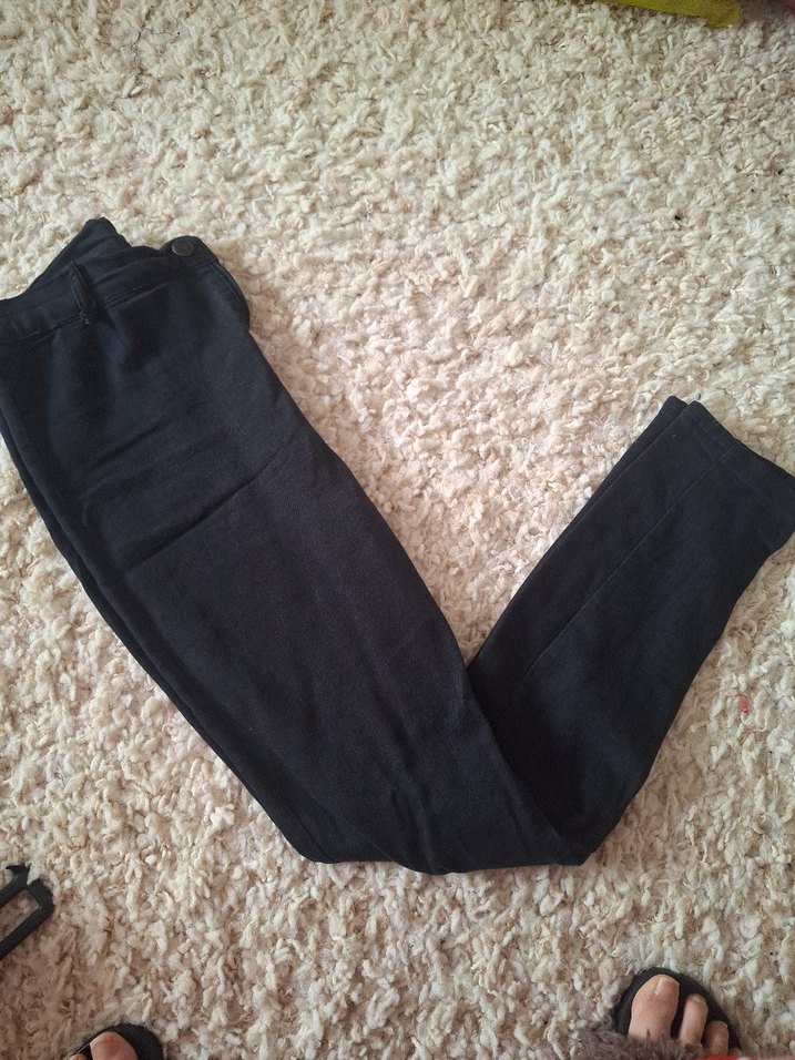 Siyah kot pantolon, rahat kesim ve midi boyda, günlük kullanım için konforlu ve zahmetsiz şıklık sunar. Trendy ve rahat bir stil için uygundur.