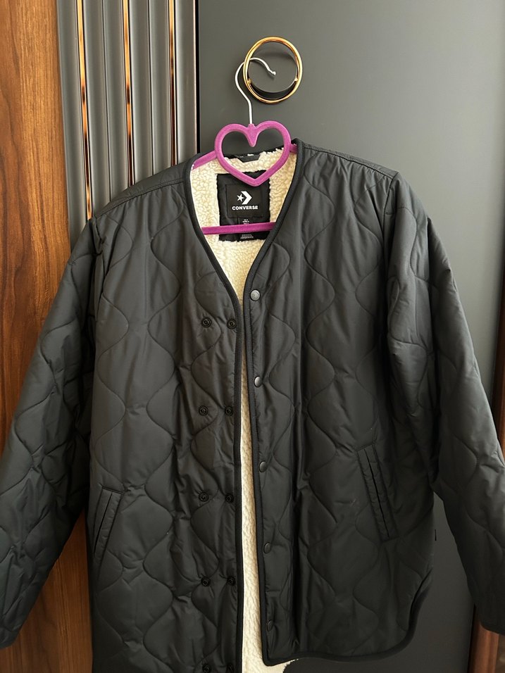 Siyah renkli ve rahat kesime sahip ceket, içi tüylü yumuşak ve sıcak tutuyor . Günlük kullanıma uygundur. Çok az giyildi kalıp olarak büyük