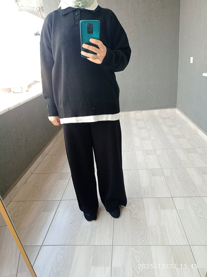 Siyah, rahat kesim triko takım gündelik kullanım için yumuşak ve sıcak kumaştan yapılmıştır. Rahat ve şık bir görünüm sunar.