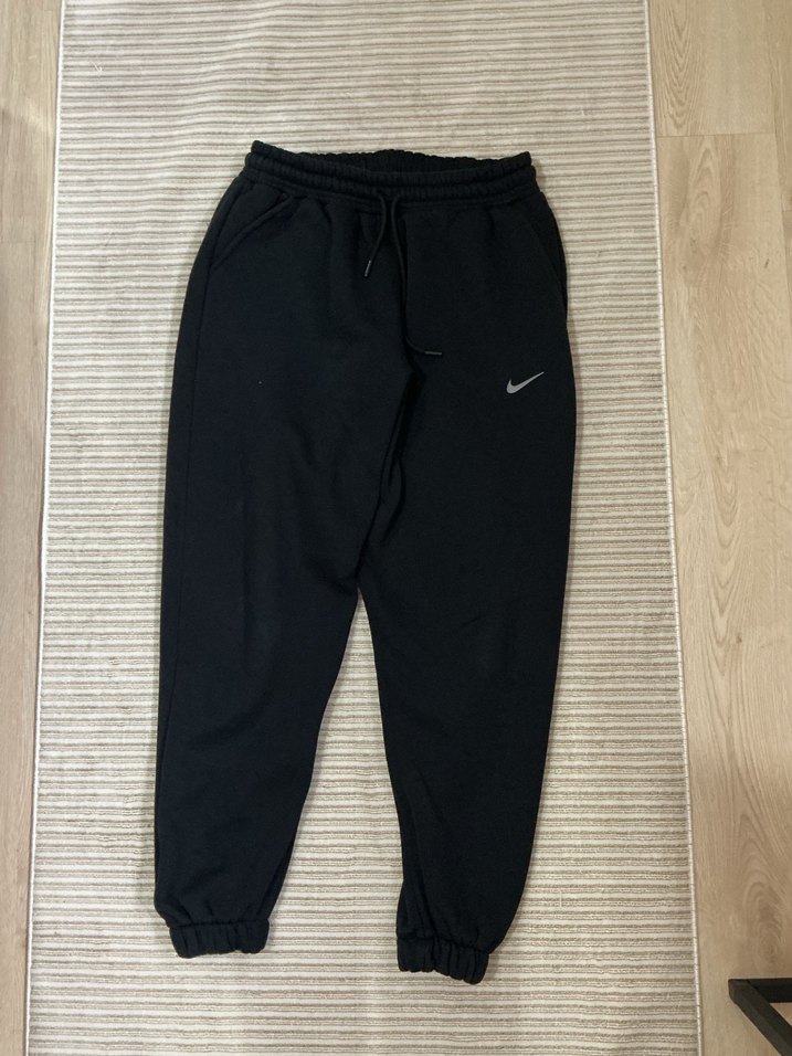 Siyah, bol kesim, elastik bel ve bilek manşetli, yumuşak ve sıcak dokulu kadın eşofman altı, günlük kullanıma uygundur. Orjinal