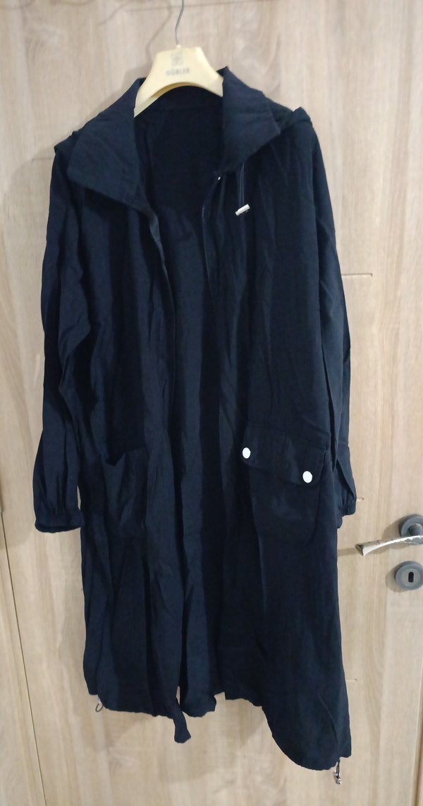 Siyah renkli, rahat kesim uzun trençkot kap Keten kumaştan, uzun kollu ve drapeli olup günlük rahat kullanıma uygundur. çok fazla üstüm olduğu için koyacak yer yok artık yıkadım etiketi yok ama yeni hiç giyilmedi omuzdan aşağıya uzunluğu 100 kol boyu savaş omuzdan dökümüne 47 2 koltuk arası 65 geniş 42 44 46 48 bedene uyumlu