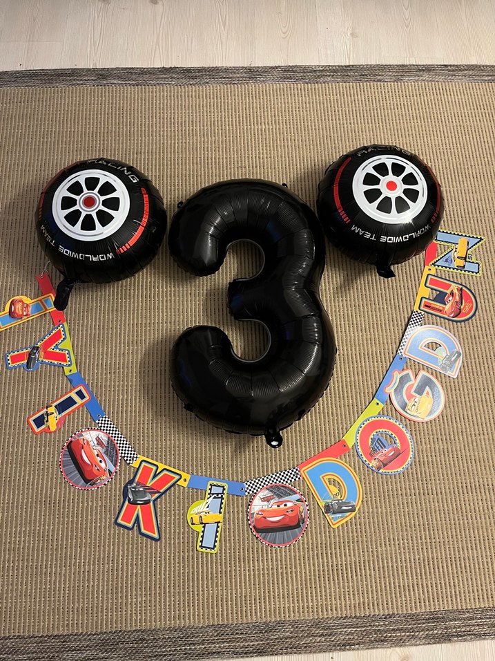 Önemli tekerlek balonlar dahil değilidir. Siyah 3 rakam balonu,renkli Arabalar temalı parti süsü seti .tekerlek balonlar indirirken mekanizması bozuldu üç sağlam tekrar kullanılabilir